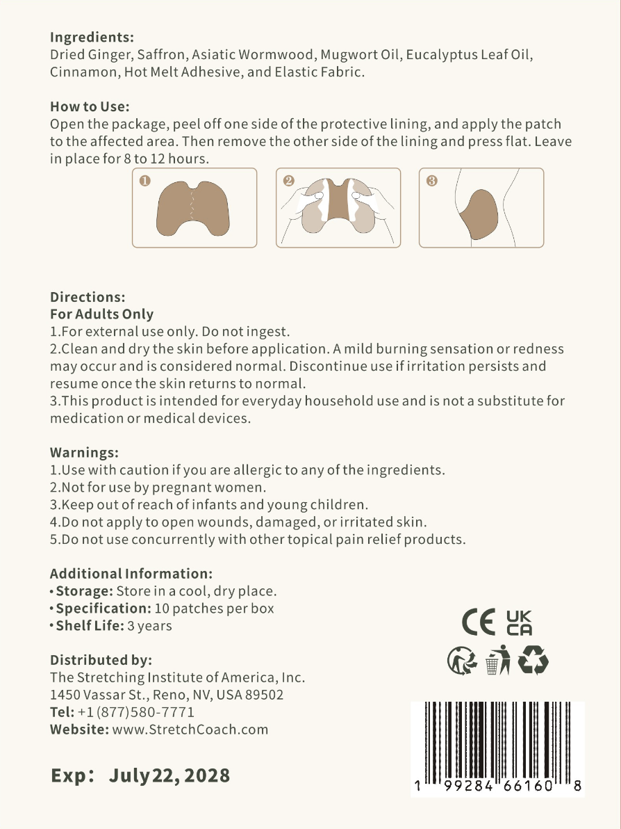 Because it uses an elastic structure, the patch adapts to bending and stretching. Therefore, it remains comfortable whether you are walking, exercising, or resting. Many people use it during work, workouts, or recovery periods.